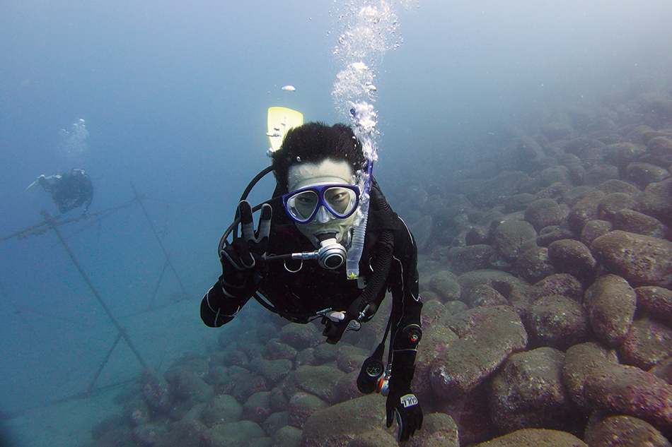 天気:晴れ  最高気温:23℃  風向き:南  透明度:5〜15m  水温19〜22℃