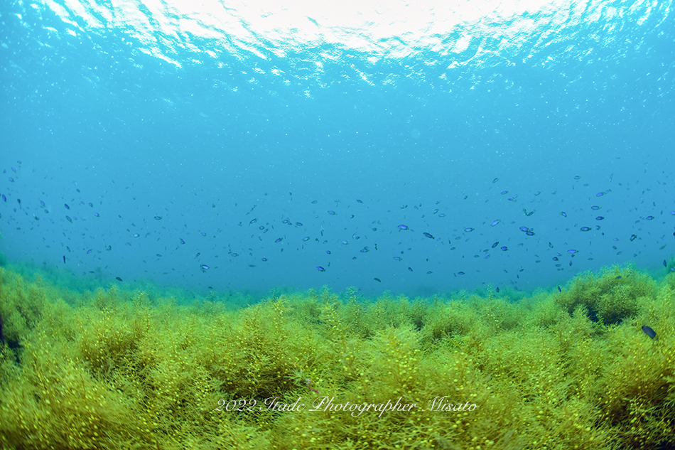 ホンダワラの上に群れるスズメダイの数がどんどん増えている気がします。