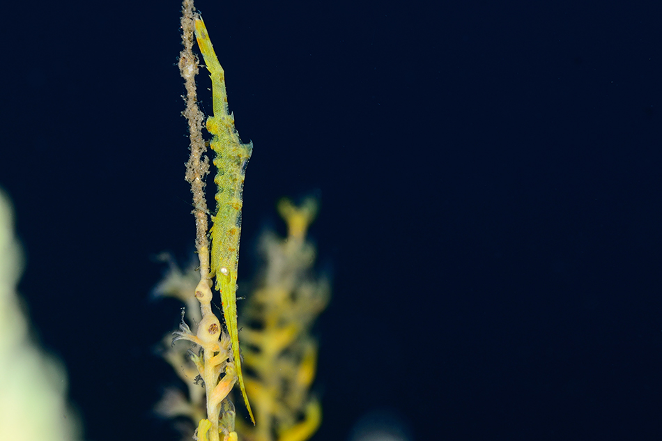 ちょっと深場での確認ですが、居着いているコエダモドキも元気いっぱいでポリプ全開です!