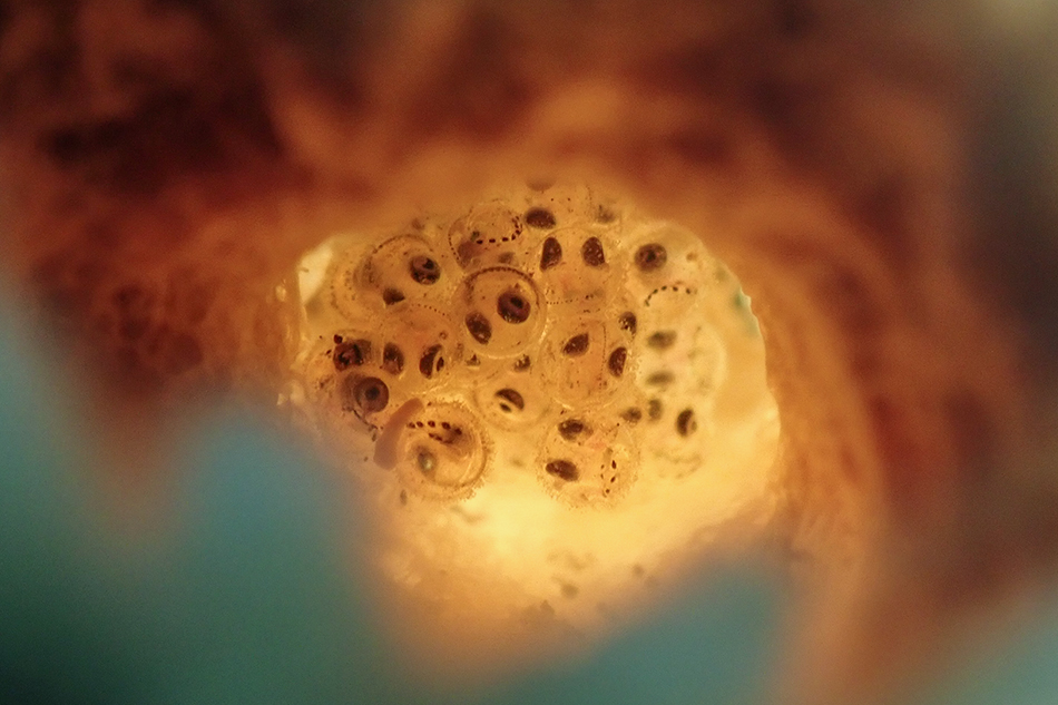 まだザラカイメンの中を覗くとオビアナハゼの卵が!