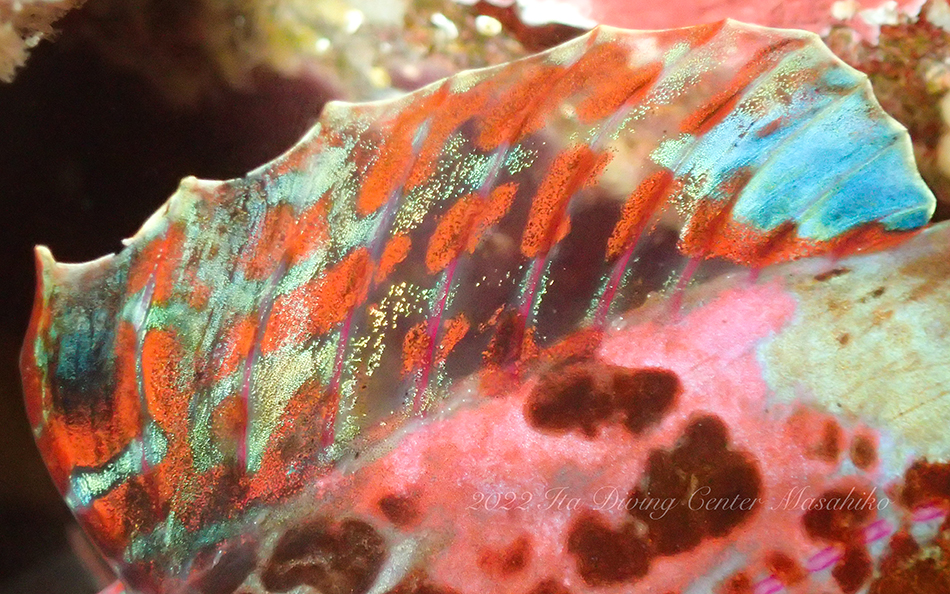 オビアナハゼのヒレはよく見るとこんなにも鮮やかです!半透明の部分があるのもすごく綺麗です。