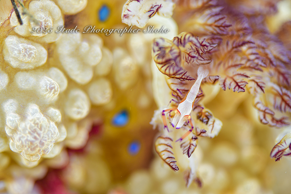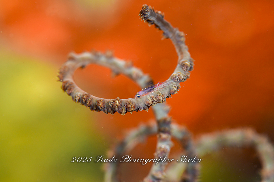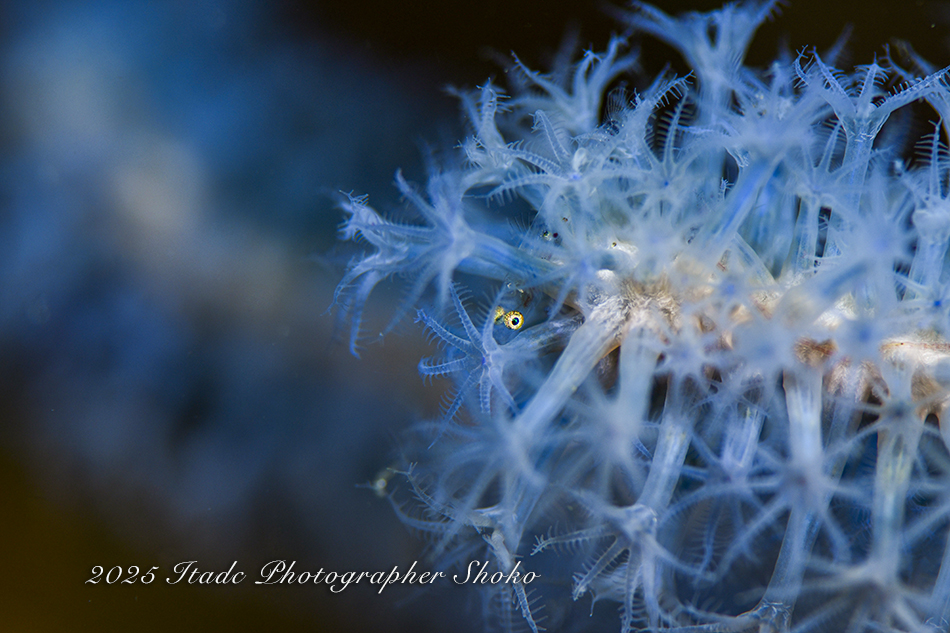 生物はウミウシカクレエビ、ニシキフウライウオ×3、ヒレナガネジリンボウのペアとネジリンボウとヒレナガネジリンボウのペア、ヒレナガネジリンボウの幼魚、キツネベラ幼魚、ナノハナスズメダイ幼魚、ヒマワリスズメダイ幼魚、チンアナゴ、ホタルビオニハゼ、ヒメオニハゼ、クダゴンベ、クマノミ、ハナゴイ、ウミテング幼魚、オトメハゼ幼魚、イソギンチャクモエビ、カザリイソギンチャクエビ、ビシャモンエビなど。