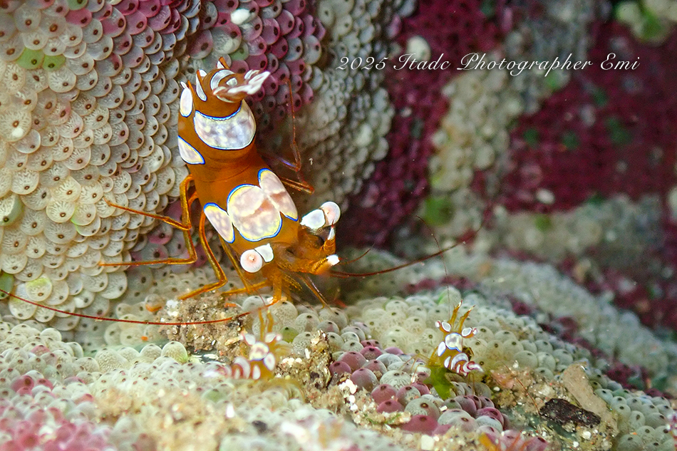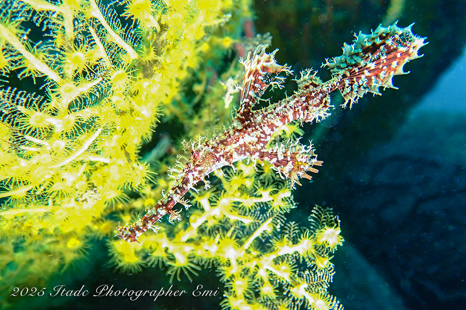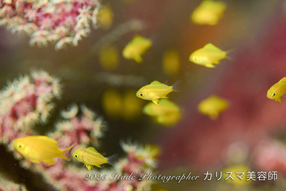 観察出来ている生物はミジンベニハゼのペア、ニシキフウライウオ、クダゴンベ、ヒレナガネジリンボウ、ネジリンボウ、スミレナガハナダイyg、ウミテング、ナンヨウツバメウオ、ホタルビオニハゼ、ヒメオニハゼ、シリウスベニハゼ、ケサガケベラyg、コガネスズメダイyg、ヒマワリスズメダイyg、ナノハナスズメダイyg、ハナゴイ、ホカケハナダイ、ニラミギンポ、ビシャモンエビ、クマノミ、イソギンチャクモエビ、カザリイソギンチャクエビなど観察出来ています。