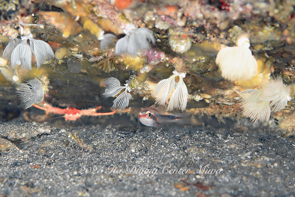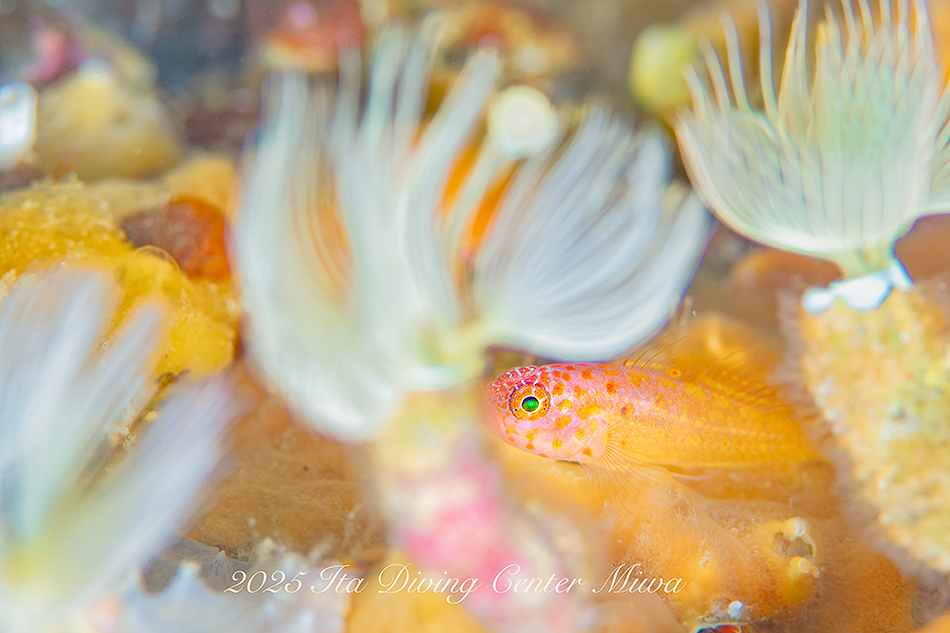 フウセンカンザシに囲まれて井田らしい背景のシリウスベニハゼ♪