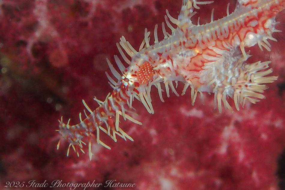 観察出来ている生物はクマドリカエルアンコウ黒、白×3、極小イロカエルアンコウ、ミジンベニハゼのペア、ニシキフウライウオ多数、クダゴンベ幼魚、スジハナダイ幼魚、ベニハナダイ幼魚、デルタスズメダイ幼魚、マツカサウオ幼魚、シマキンチャクフグ幼魚、ヒレナガネジリンボウ、ヒレナガネジリンボウ幼魚、ネジリンボウ幼魚、ハダカハオコゼ幼魚、シリウスベニハゼ、オオメハゼ、ネッタイミノカサゴ幼魚、ホタルビオニハゼのペア、コガネスズメダイ幼魚、ヒマワリスズメダイ幼魚、タツノイトコ幼魚、ビシャモンエビ、クマノミ、イソギンチャクモエビ、カザリイソギンチャクエビ、モンツキベラ幼魚、クロフチススキベラ幼魚、コガネキュウセン幼魚、ホシテンス幼魚、アライソコケギンポ、トウシマコケギンポ、セスジミノウミウシ、タマガワコヤナギウミウシ、ミヤコウミウシなど。