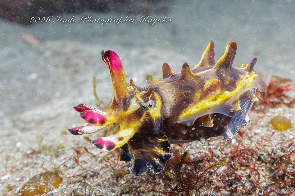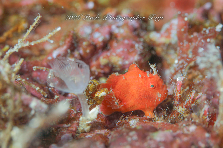 観察出来ている生物はハナイカ×2、エナガカエルアンコウ幼魚×3、クダゴンベ幼魚、ミジンベニハゼのペア、スベヨコエビSP、ホムラスベヨコエビ、ホタルビスベヨコエビ、マスダオコゼ幼魚、ツノヒメイカ、ハクセンアカホシカクレエビ、アカオビハナダイ、ナガハナダイ、タマガワコヤナギウミウシ、ツルガチゴミノウミウシ、ヒメエダウミウシ、セスジミノウミウシ、イソギンチャクモエビ、クマノミ、ムチカラマツエビなどが確認できています。