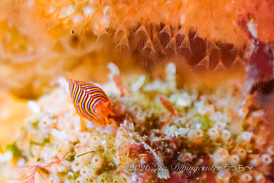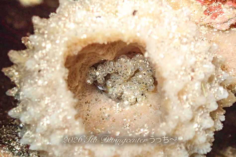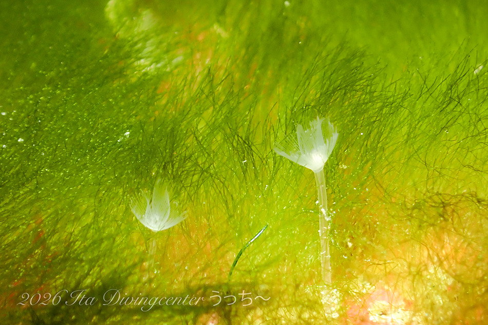 今朝から東風がビュービューと強く吹きまた寒くなってきました。お昼頃には雲がはけて太陽が出てきたので、すこーし暖かくなりましたー天気よく、海も久々にベタ凪なのでダイビング日和な1日ですね!水中では浮遊物が流されて水も澄んできてます!浅場から海藻絨毯が広がって、ネンブツダイがお出迎えしてくれます!