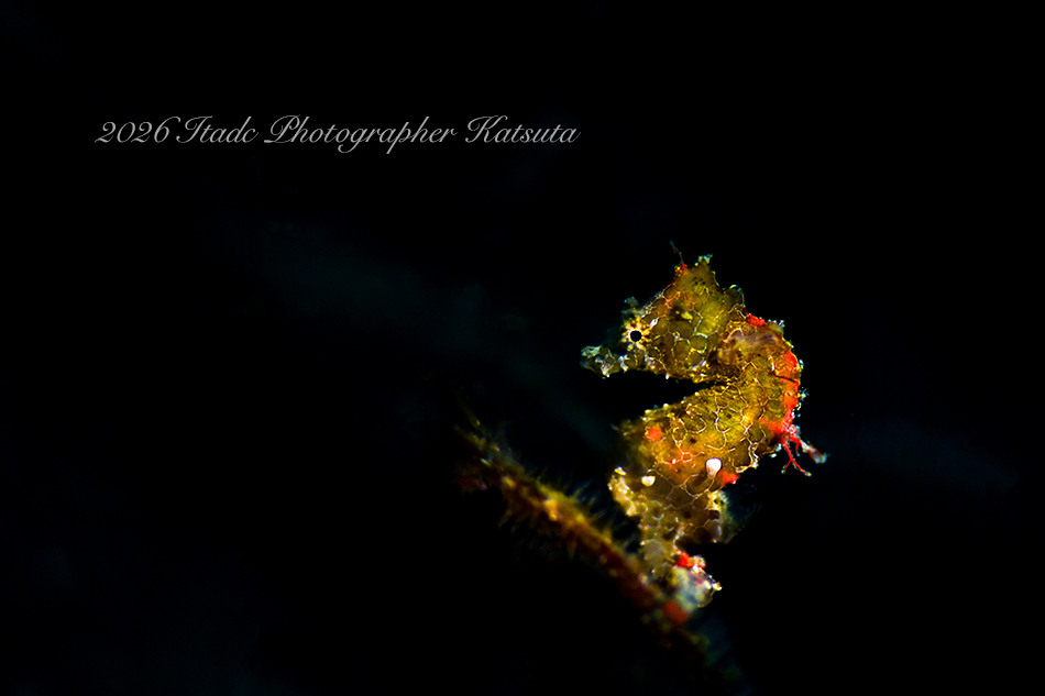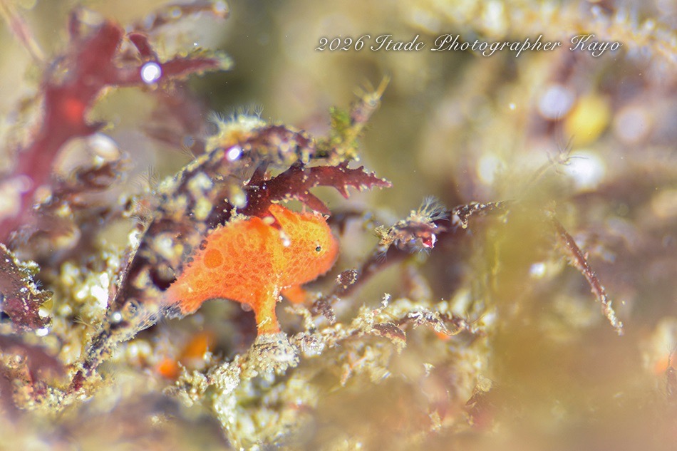 今日はこの他、ミジンベニハゼのペア、イロカエルアンコウ、ツノヒメイカ、ビシャモンエビ、イズオコゼ幼魚、マスダオコゼ幼魚、ヤマドリ、ウミウシ各種、ヨコエビ各種が観られました。