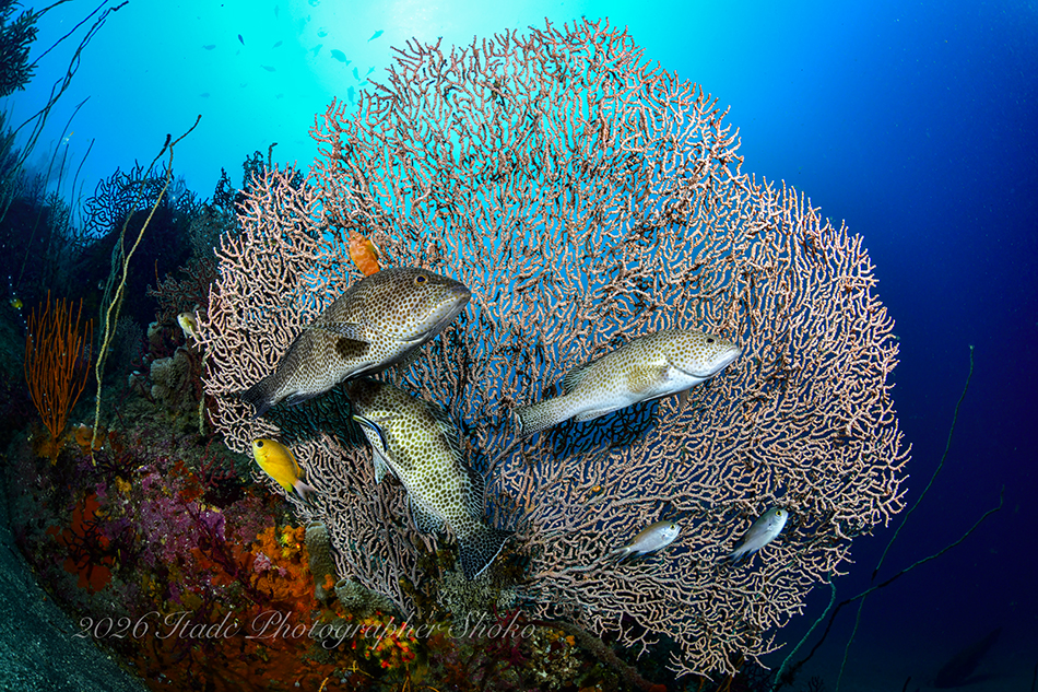 今はアカハタが少なくなりオオモンハタが目立つようになりました。これも水温変化のせいかな?