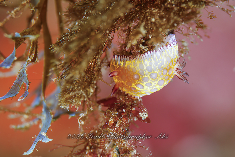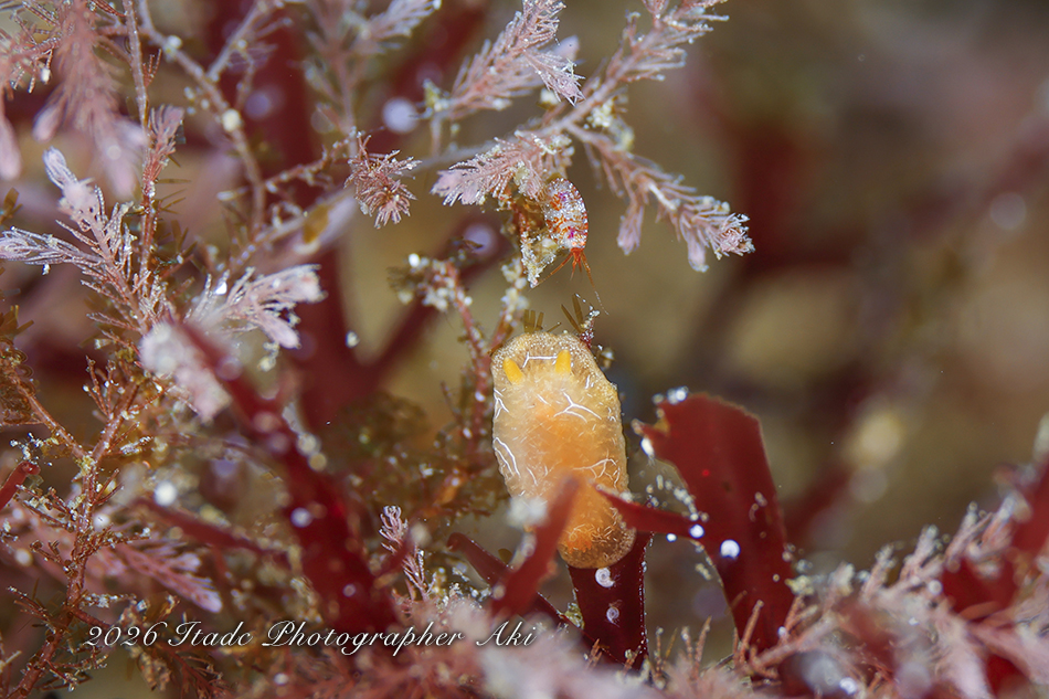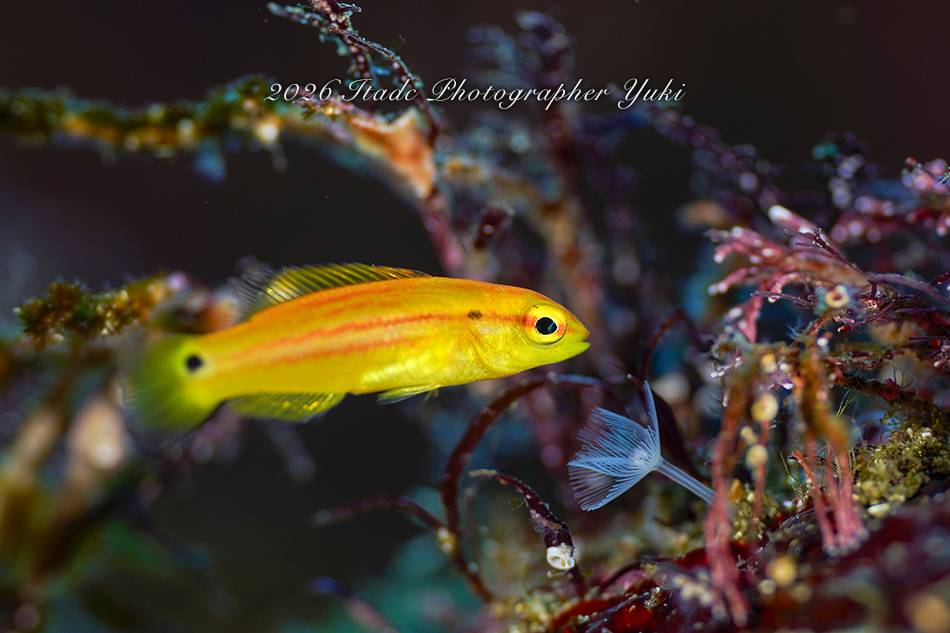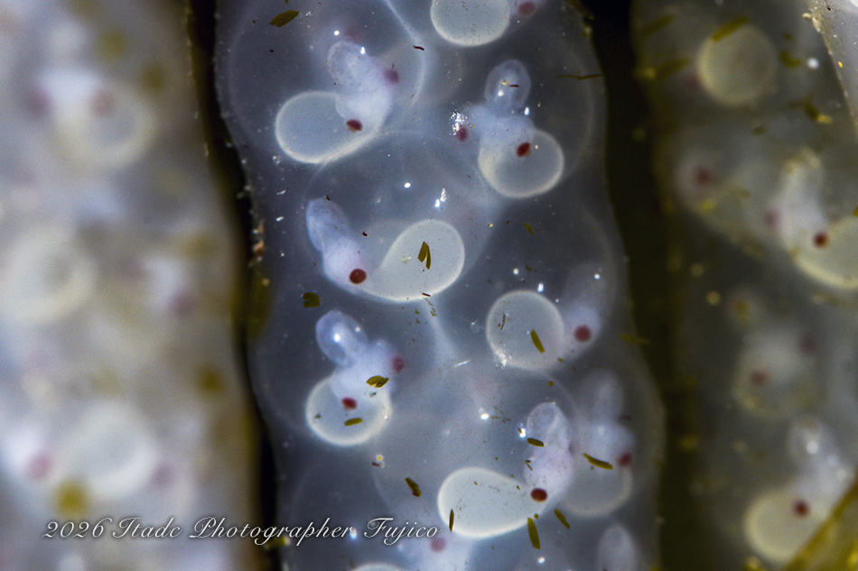 観察できている生物は、エナガカエルアンコウ幼魚、ハチジョウタツ、クダゴンベ、ミジンベニハゼのペア、タマガワウミウシ属の一種17、ボブサンウミウシ、スベヨコエビSP、ホムラスベヨコエビ、ハクセンアカホシカクレエビ、アカオビハナダイ、ナガハナダイ、サクラダイ、ヤマドリ幼魚、オビアナハゼの卵、クロモウミウシ、ヒメエダウミウシ、コアカリュウグウウミウシ、コミドリリュウグウウミウシ、クマノミ、ムチカラマツエビ、ビシャモンエビなど。