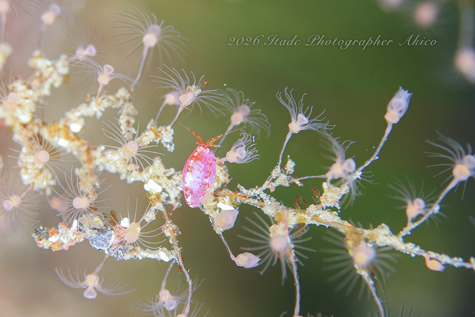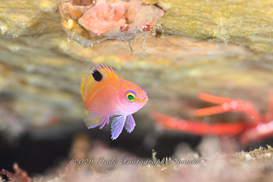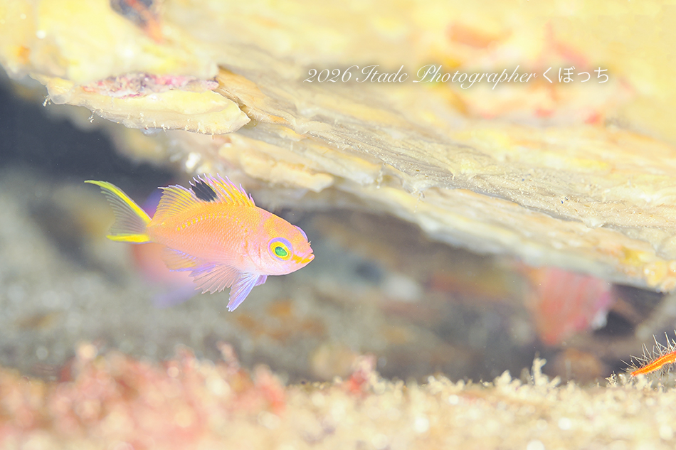 観察出来ている生物はキアンコウ、エナガカエルアンコウ幼魚、ヒメヒラタカエルアンコウ幼魚、イロカエルアンコウ幼魚×、オオモンカエルアンコウ幼魚、ハチジョウタツ、クダゴンベ幼魚、ミジンベニハゼのペア、シリウスベニハゼ、スベヨコエビSP、ホムラスベヨコエビ、マスダオコゼ幼魚、ツノヒメイカ、ヒレナガネジリンボウ、ハクセンアカホシカクレエビ、アカオビハナダイ、ナガハナダイ、ツノザヤウミウシ、タマガワコヤナギウミウシ、アカズキンリュウグウウミウシ、ツルガチゴミノウミウシ、ヒメエダウミウシ、セスジミノウミウシ、イソギンチャクモエビ、クマノミ、ムチカラマツエビなどが確認できています。