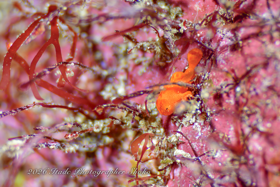 観察出来ている生物はクマドリカエルアンコウ白2匹、イロカエルアンコウ幼魚×2、ハチジョウタツ、ニシキフウライウオ、カミソリウオのペア、クダゴンベ幼魚、ミジンベニハゼのペア、シリウスベニハゼ、ヒメニラミベニハゼ、スベヨコエビSP、ホムラスベヨコエビ、マスダオコゼ幼魚、ネジリンボウ、ヒレナガネジリンボウ、ハクセンアカホシカクレエビ、アカオビハナダイ、ナガハナダイ、ツノザヤウミウシ、タマガワコヤナギウミウシ、アカズキンリュウグウウミウシ、ツルガチゴミノウミウシ、ヒメエダウミウシ、セスジミノウミウシ、イソギンチャクモエビ、クマノミ、ムチカラマツエビなどが確認できています。