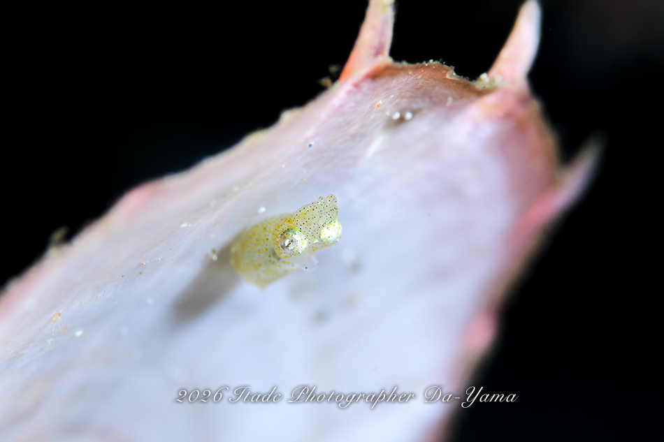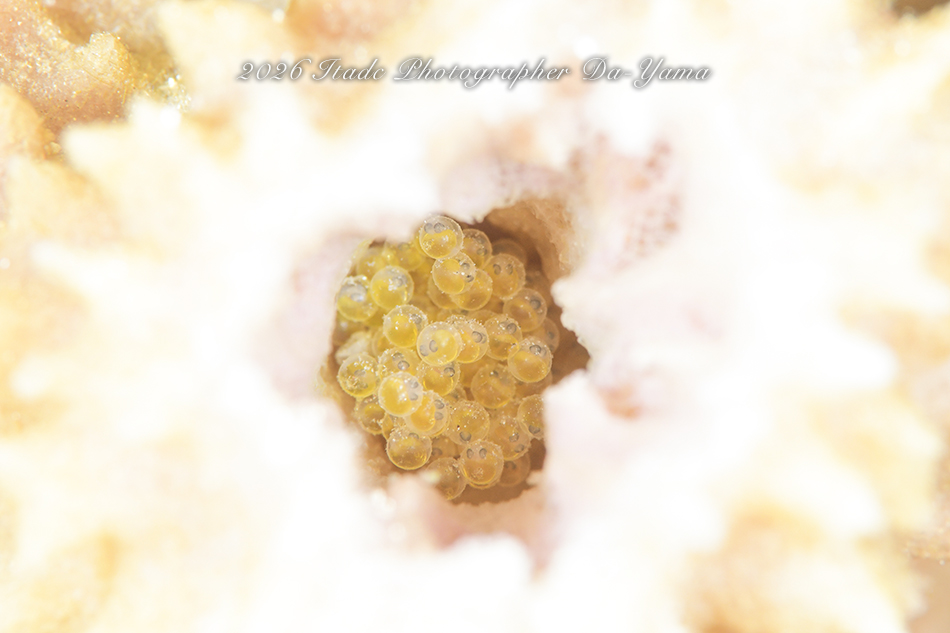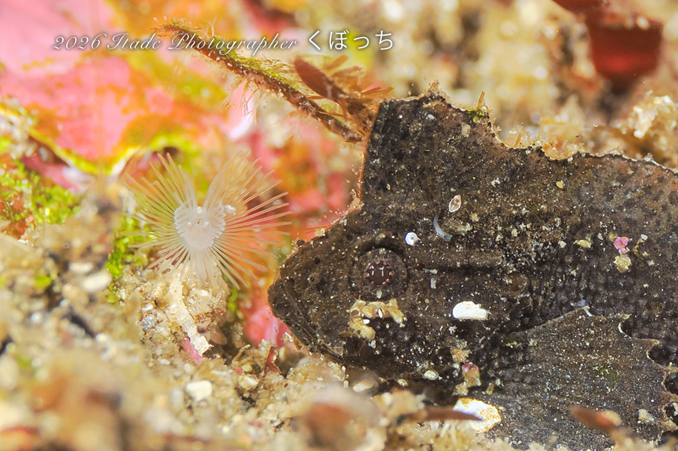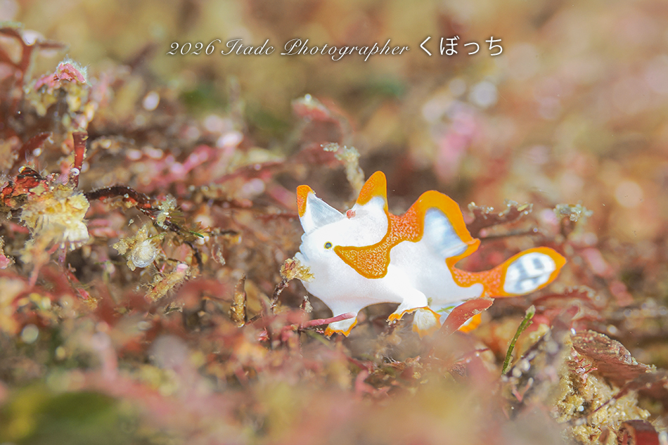 観察出来ている生物はクマドリカエルアンコウ白2匹、イロカエルアンコウ幼魚×2、ハチジョウタツ、ニシキフウライウオ、クダゴンベ幼魚、ミジンベニハゼのペア、シリウスベニハゼ、スベヨコエビSP、ホムラスベヨコエビ、マスダオコゼ幼魚、ヒレナガネジリンボウ、ハクセンアカホシカクレエビ、アカオビハナダイ、ナガハナダイ、ツノザヤウミウシ、タマガワコヤナギウミウシ、アカズキンリュウグウウミウシ、ツルガチゴミノウミウシ、ヒメエダウミウシ、セスジミノウミウシ、イソギンチャクモエビ、クマノミ、ムチカラマツエビなどが確認できています。