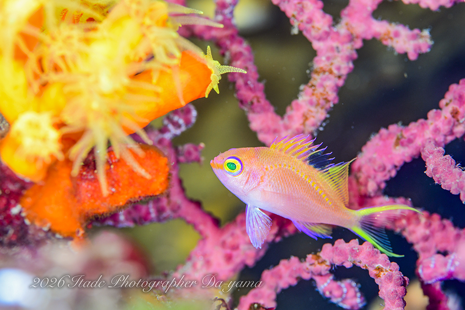 少し敏感なサクラダイですが、調子が良い時はこうして表に出てくれます!キサンゴとフトヤギと一緒に撮れちゃいます!