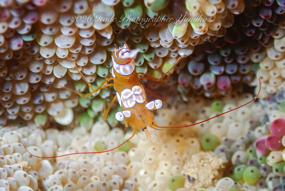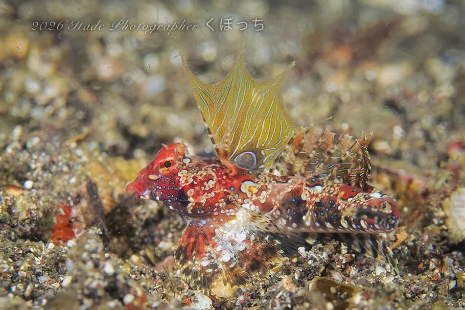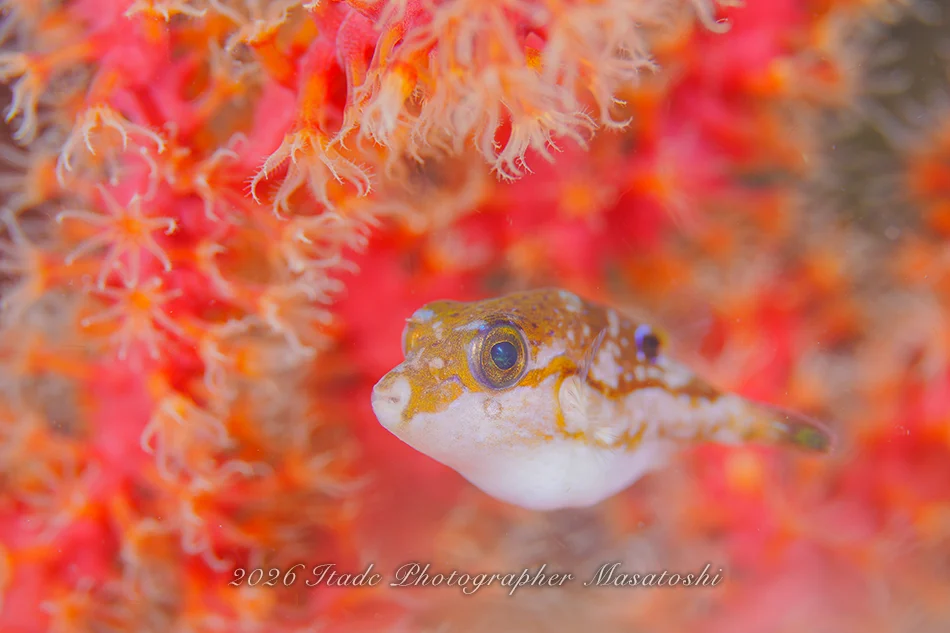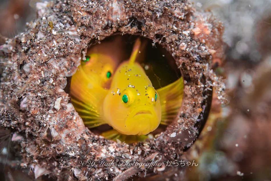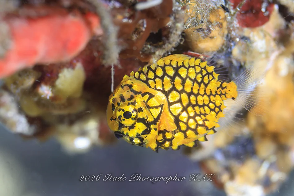 観察できている生物は、アカグツ、ハチジョウタツ、クダゴンベ、ミジンベニハゼのペア、スベヨコエビSP、ホムラスベヨコエビ、マツカサウオ幼魚、トウシマコケギンポ、ハクセンアカホシカクレエビ、アカオビハナダイ、ナガハナダイ、サクラダイ、ヤマドリ幼魚、タツノイトコ、クロモウミウシ、トヤマモウミウシ、アリモウミウシ、ミドリアマモウミウシ、ヒメエダウミウシ、コミドリリュウグウウミウシ、ムチカラマツエビ、ビシャモンエビ、ウミカラマツエビなど。