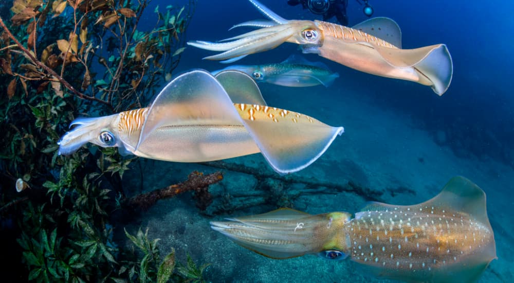 Spring/春の井田 太陽を浴びた海藻の森と、栄養の証「春濁り」。霞んだ視界の向こうではアオリイカや小さな幼魚たちが命を育む、賑やかな春の海です。 詳しく見る 海藻に卵を産み付けるアオリイカに大注目の産卵シーズン! arrow_back 前へ 次へ arrow_forward 萌ゆる緑の森と、命のゆりかご 光降る、エメラルドグリーンの森へ。 Condition /海況 Advice /アドバイス 海藻の森は絶好のフォトスポット。レンズ選びが楽しい季節です。 ・水温:16℃~19℃
