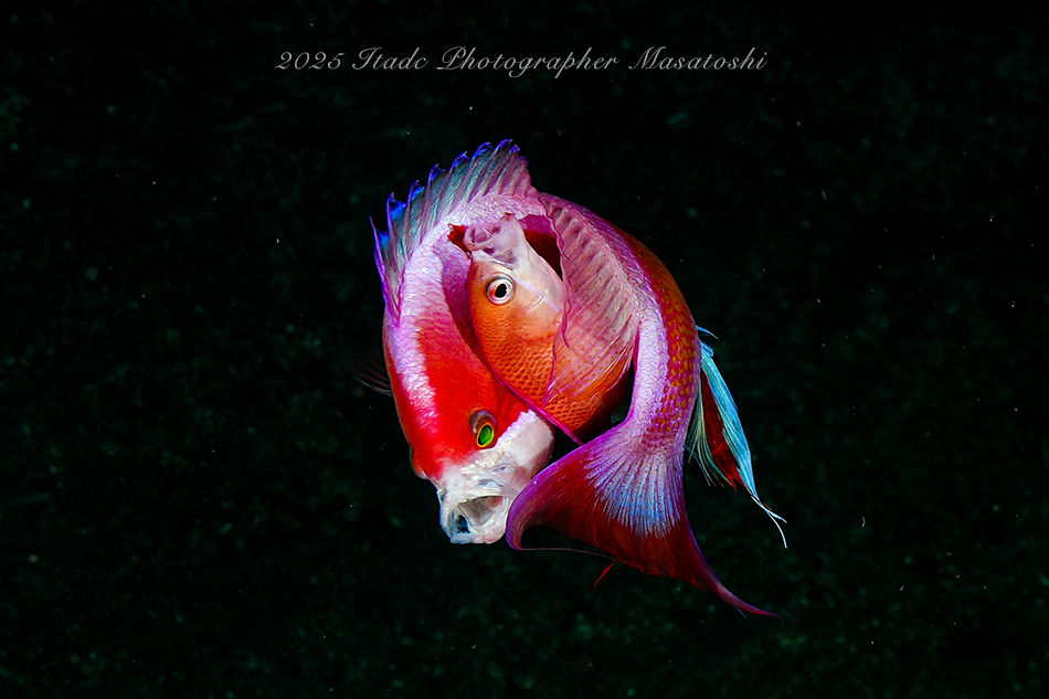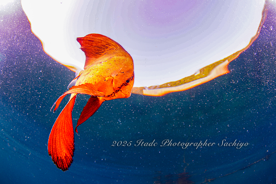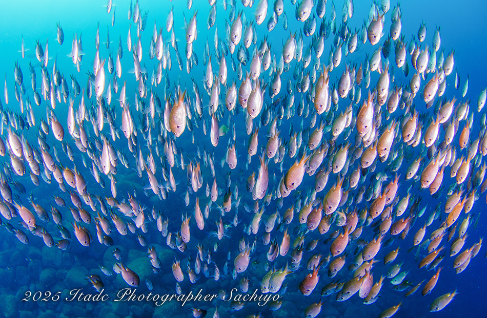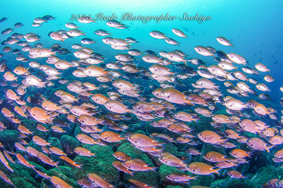 深度を落としていくと、キンギョハナダイやコガネスズメダイの幼魚が出始め水中がやっとやっと賑やかになってきました。