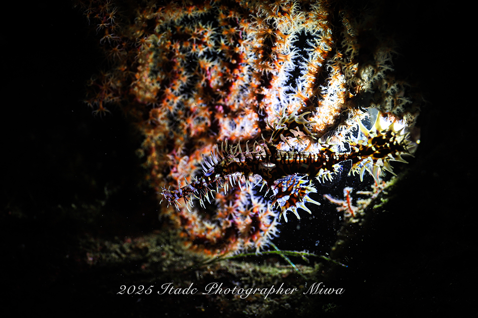 今日はこの他、ヒレナガネジリンボウ、ネジリンボウ、クダゴンベ、テングノオトシゴyg、イソギンチャクモエビ、カザリイソギンチャクエビ、ザラカイメンカクレエビ、イボイソバナガニ、ムチカラマツエビ、ビシャモンエビ、クマノミyg、モンツキベラyg、クロフチススキベラyg、コガネキュウセンyg、フタホシキツネベラyg、アライソコケギンポ、トウシマコケギンポ、アオサハギygなどが観られました。