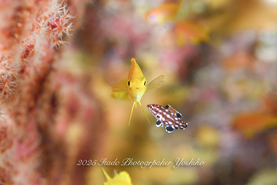 午後からは予報通り風波が出てきたので付き添いの体験ダイビングは大瀬崎へ。