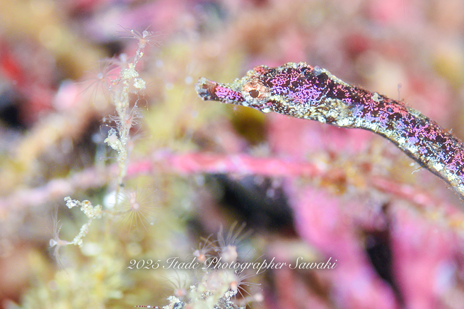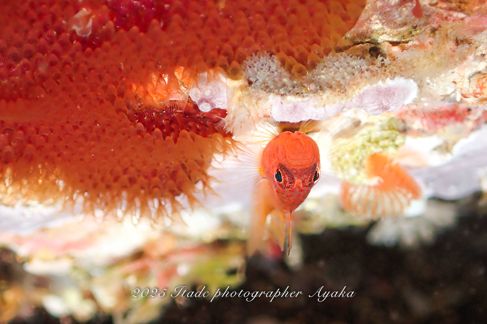 観察出来ている生物はクマドリカエルアンコウ幼魚、極小イロカエルアンコウ×2、ミジンベニハゼのペア、ベルベットゴーストパイプフィッシュ、ニシキフウライウオ、ホソフウライウオ、クダゴンベ幼魚、ヒレナガネジリンボウ、ヒレナガネジリンボウ幼魚、ネジリンボウ幼魚、ハダカハオコゼ幼魚、クジャクベラ幼魚、クロフチススキベラ幼魚、ナマコマルガザミ、シリウスベニハゼ、オオメハゼ、マルハナシャコ、ウミテング幼魚、ネッタイミノカサゴ幼魚、ホタルビオニハゼのペア、コガネスズメダイ幼魚、ヒマワリスズメダイ幼魚、タツノイトコ幼魚、ビシャモンエビ、クマノミ、イソギンチャクモエビ、カザリイソギンチャクエビ、モンツキベラ幼魚、コガネキュウセン幼魚、ホシテンス幼魚、アライソコケギンポ、トウシマコケギンポ、セスジミノウミウシ、クロヘリアメフラシなど。