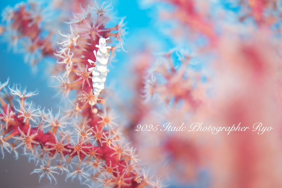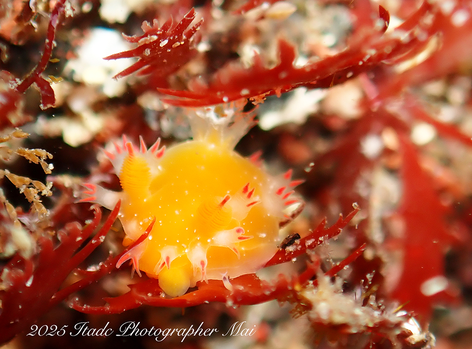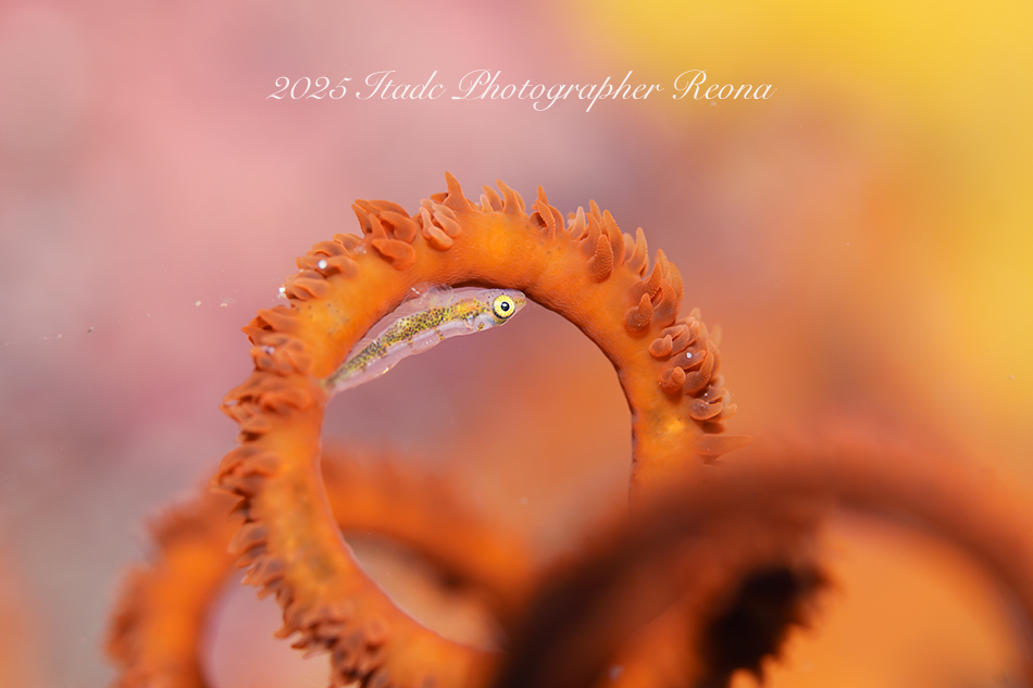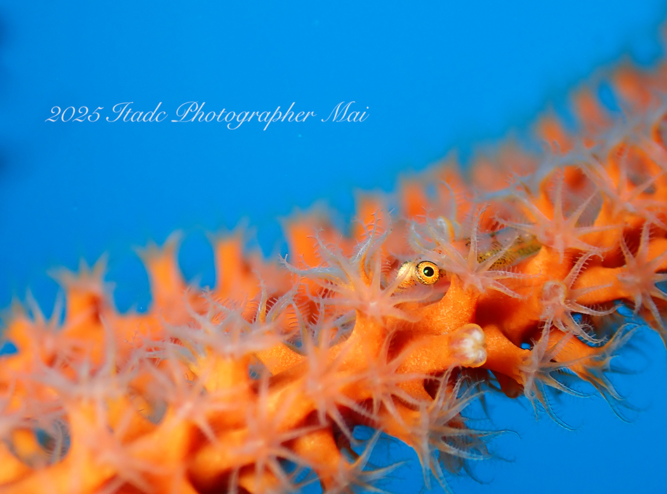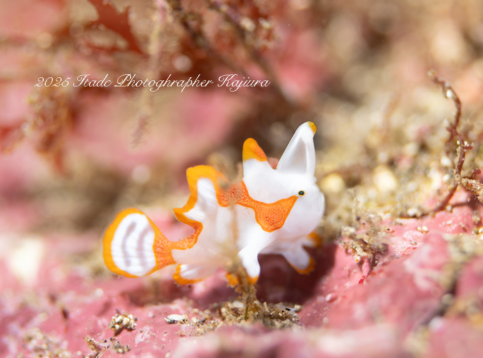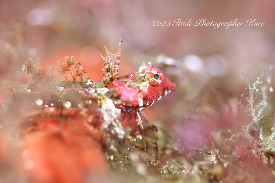 今観察出来ている生物は…クマドリカエルアンコウ白4匹、イロカエルアンコウ白、オオモンカエルアンコウ(ピンク)、ニシキフウライウオ、クダゴンベ幼魚、ミジンベニハゼのペア、ネジリンボウ、ヒレナガネジリンボウ、アカハチハゼ、オトメハゼ、ホタルビオニハゼ、アカオビハナダイ、ナガハナダイ、スジハナダイ、トゲトゲウミウシ、アカズキンリュウグウウミウシ、セスジミノウミウシ、イソギンチャクモエビ、クマノミなど確認できています。