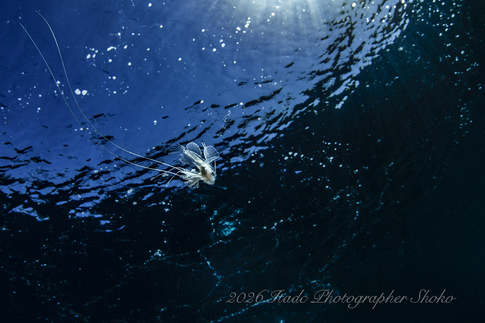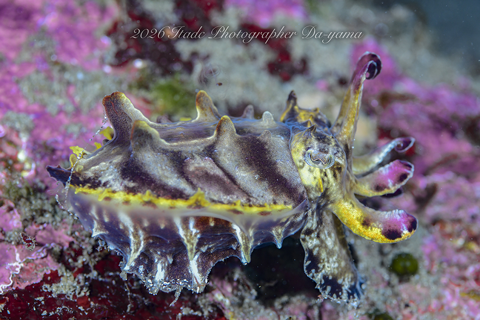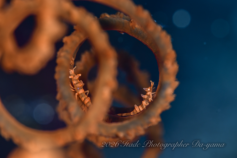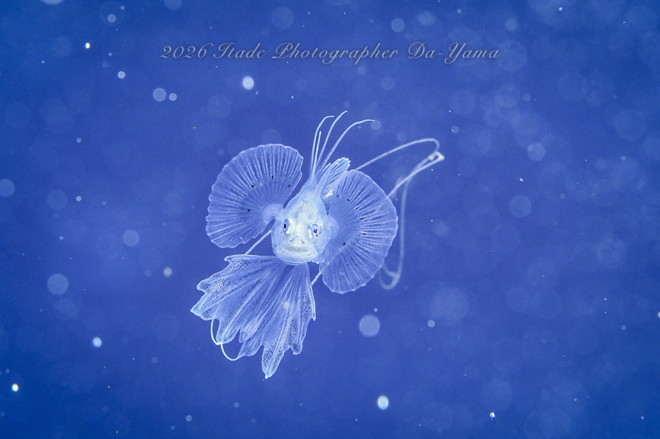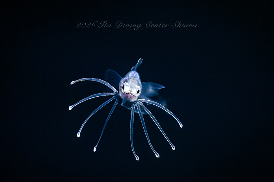 観察できている生物は、ハナイカ×2、エナガカエルアンコウ幼魚3×、イロカエルアンコウ幼魚、ハチジョウタツ×3、クダゴンベ、ミジンベニハゼのペア、ボブサンウミウシ、スベヨコエビSP、ホムラスベヨコエビ、マスダオコゼ幼魚、ツノヒメイカ、ハクセンアカホシカクレエビ、アカオビハナダイ、ナガハナダイ、ヤマドリ幼魚、オビアナハゼの卵、ツノザヤウミウシ、タマガワコヤナギウミウシ、ツルガチゴミノウミウシ、ヒメエダウミウシ、アカズキンリュウグウウミウシ、コアカリュウグウウミウシ、コミドリリュウグウウミウシ、クマノミ、ムチカラマツエビ、ビシャモンエビなど。