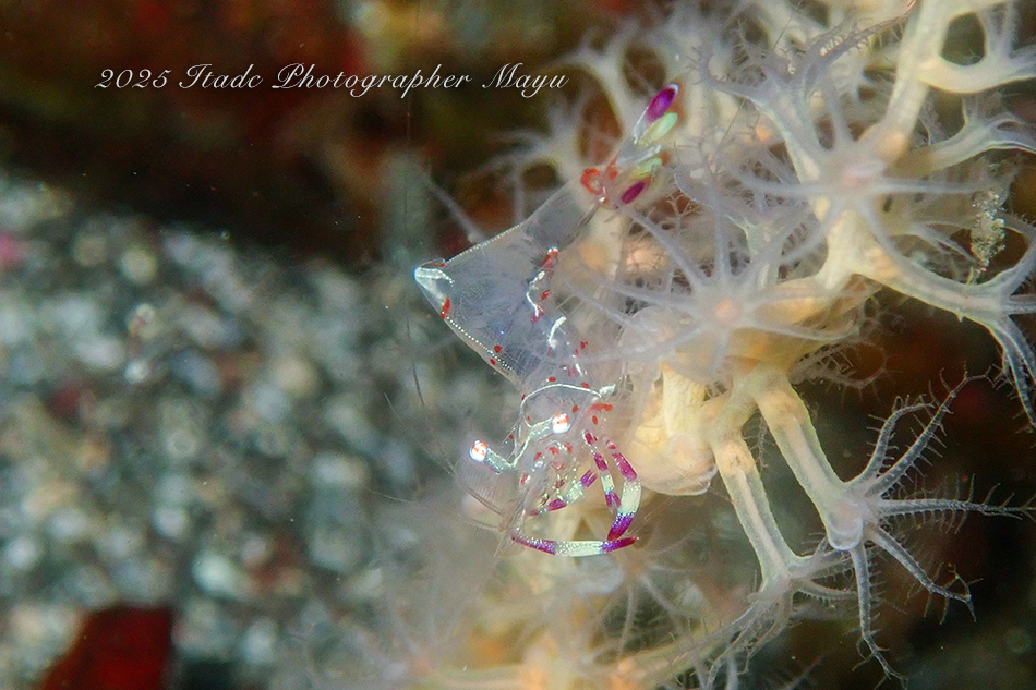 観察出来ている生物はクマドリカエルアンコウ白4匹、イロカエルアンコウ幼魚、オオモンカエルアンコウ幼魚、ハチジョウタツ2匹、ニシキフウライウオ、カミソリウオのペア、クダゴンベ幼魚、ミジンベニハゼのペア、シリウスベニハゼ、ヒメニラミベニハゼ、マスダオコゼ幼魚、ネジリンボウ、ヒレナガネジリンボウ、ハクセンアカホシカクレエビ、ホタルビオニハゼ、アカオビハナダイ、ナガハナダイ、タマガワコヤナギウミウシ、アカズキンリュウグウウミウシ、ツルガチゴミノウミウシ、ヒメエダウミウシ、セスジミノウミウシ、イソギンチャクモエビ、クマノミ、ムチカラマツエビなどが確認できています。